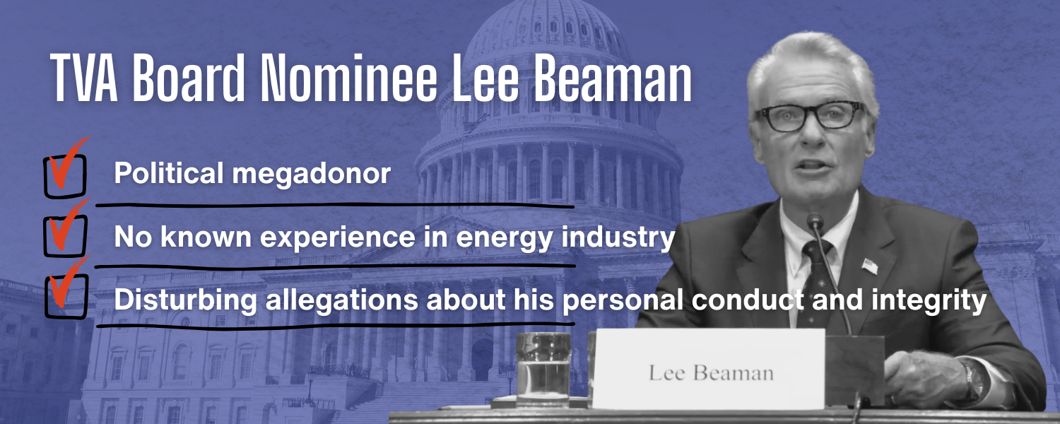 Call your senators: Ask them to vote NO on TVA board nominee Lee Beaman!